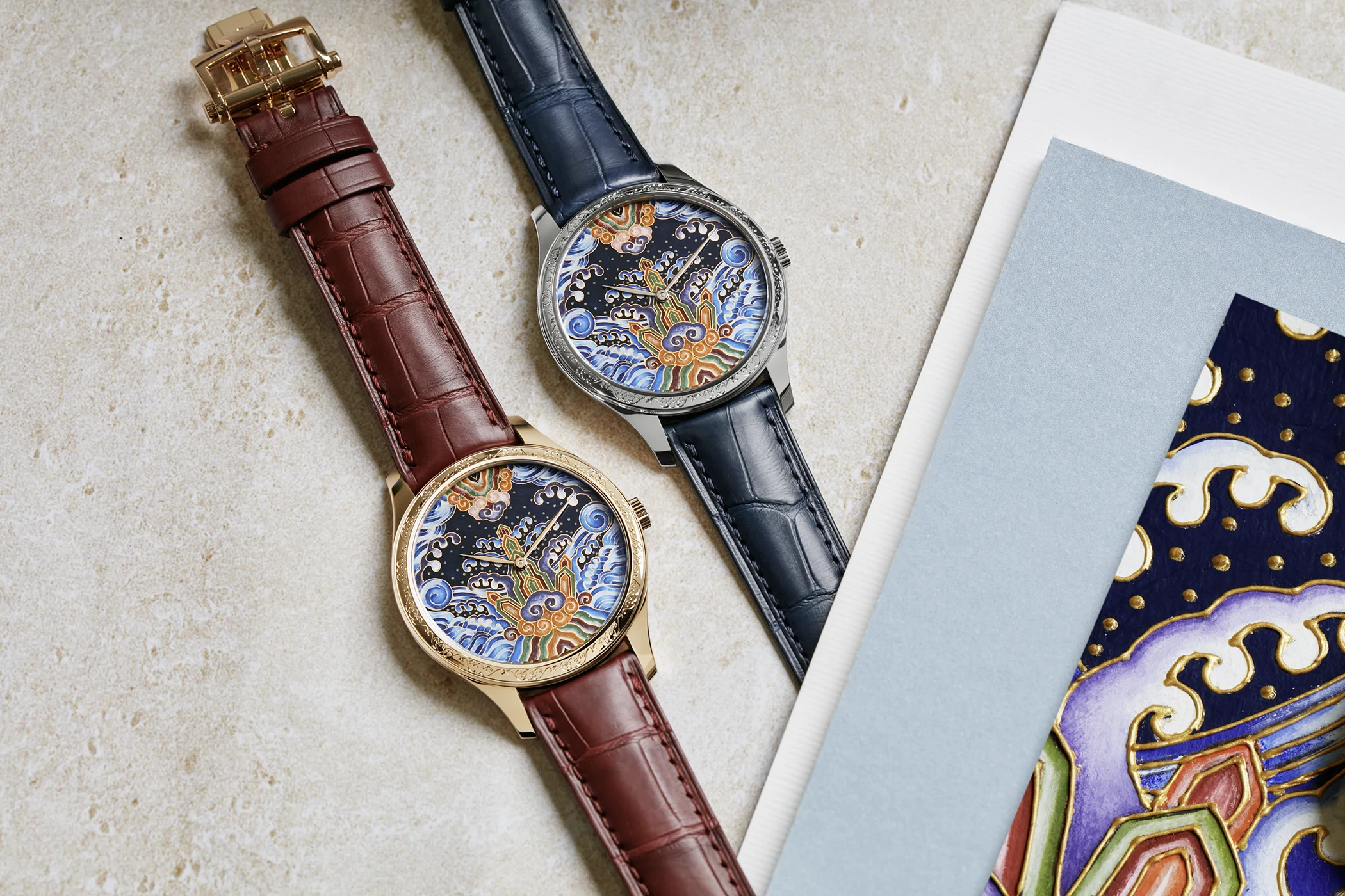 Enamelling is a particularly specialised métiers d’art in which colour, chemistry and patience converge. Mastering techniques such as Grand Feu, cloisonné and champlevé requires years of training, as each method has exacting demands in terms of surfaces, pigments and firing. The enameller applies finely ground glass mixed with metal oxides to the dial, then fires it at carefully controlled temperatures so the material vitrifies and fuses with the metal. This alchemy of fire produces colours of remarkable luminosity and permanence – hues designed to remain unchanged over time. As my colleague Joern Kengelbach recently reported in detail, the craft is as technical as it is expressive.