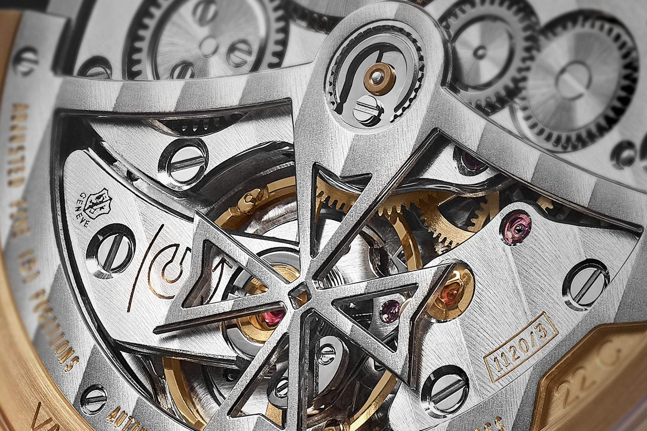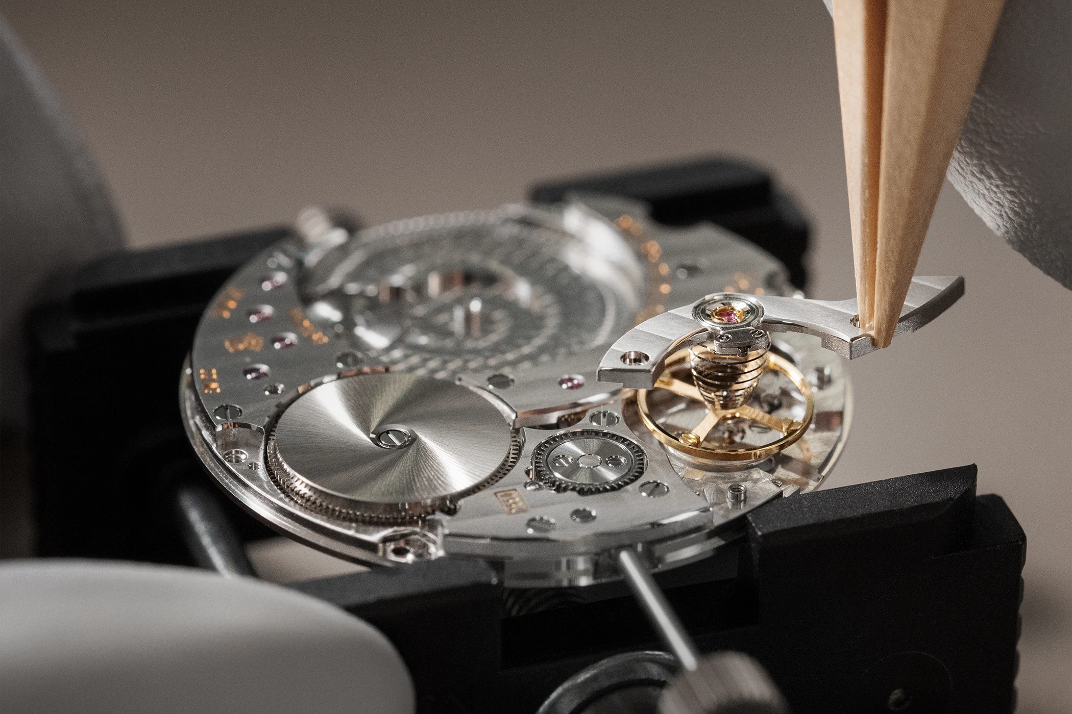 Although ultra-thin movements do not constitute a complication in the traditional sense, as they do not offer any additional functions, they require a similar level of effort in terms of design and manufacture. The development of the new Calibre 2550 at Vacheron Constantin took seven years. At just 2.4 millimetres thick, it is one of the flattest automatic movements in the world. Yet it offers a substantial power reserve of 80 hours. This is made possible by winding via a space-saving micro-rotor, an innovative flying double barrel and a gear train that is also partially suspended.