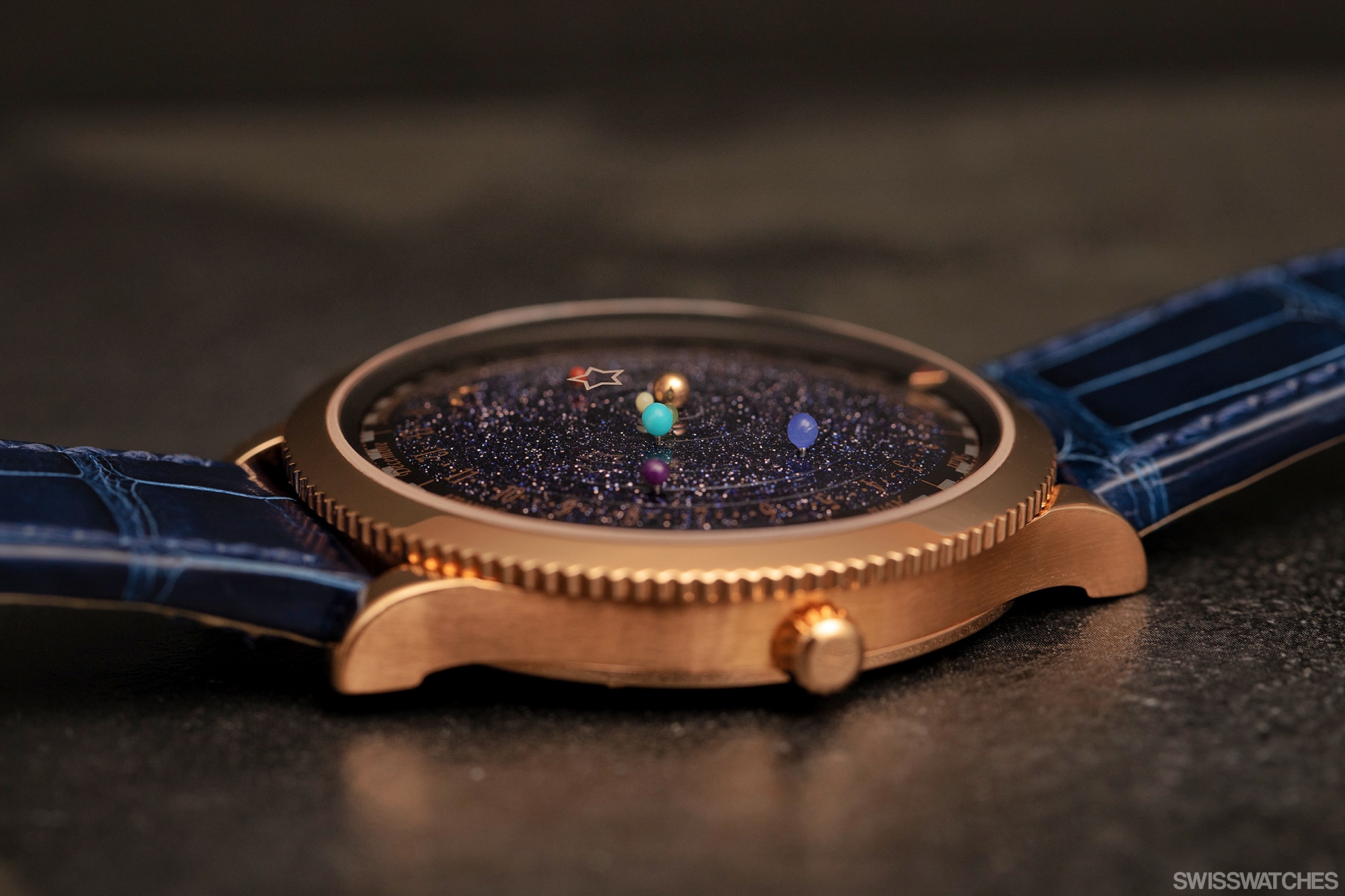 One of the most ground-breaking watches to emerge from the manufacture is the Midnight Planetarium, first appearing in 2014. Launched as part of the maison’s Poetic Complications, this is yet another watch that doesn’t settle for telling the time: rather, it recreates the solar system, condensing it to a mere 44 mm diameter. Six planets (Mercury through Saturn) orbit a solid gold sun in real time, each set in hand-crafted gemstone and following its genuine cosmic rhythm: Mercury completes a lap in 88 days, while Saturn takes a full 29 years. Aventurine rings form the night-sky backdrop, independent movements drive each orbit, and a rose-gold shooting star glides around the outer ring every 24 hours to subtly relay the time. Even the rotating bezel refuses to be purely practical; it lets the wearer mark a ‘lucky date’ so that once a year, Earth sits beneath a tiny engraved star on the sapphire crystal; a poetic alignment reserved for anniversaries, new beginnings, or whatever moment one might choose to honour.