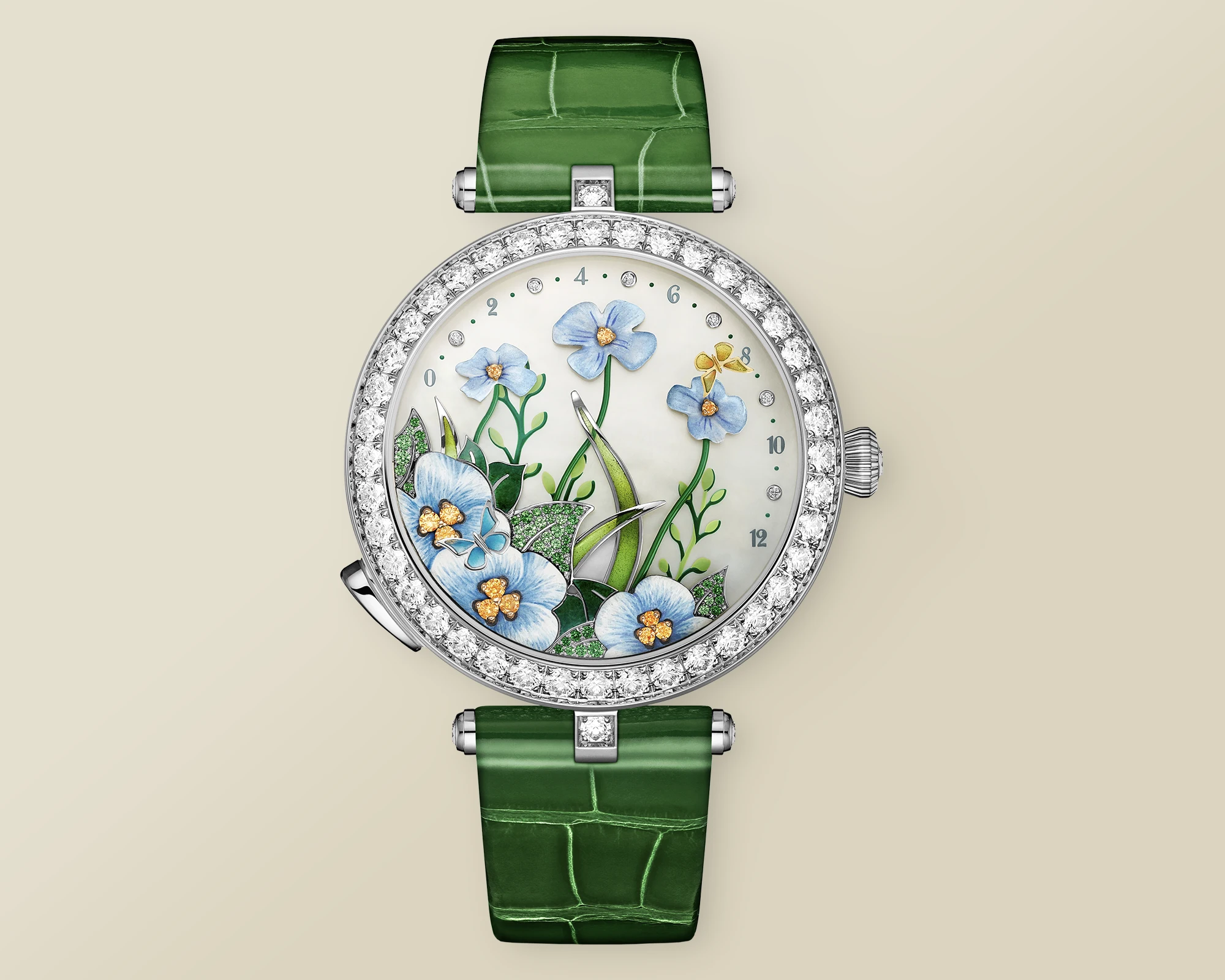 Evidently Van Cleef & Arpels has been treating watches not only as instruments of precision, but as jewellery, artistry, and expressions of emotion, for some time. The maison’s first so-called secret watches, first appearing in the 1920s, were worn as a high-jewellery necklace; timepieces transformed into elaborate bejewelled pendants or brooches, inviting the wearer to choose how time accompanies them. It was the start of a watch and jewellery revolution.