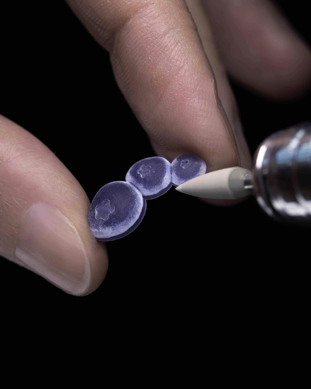 The enamellers hold the final desired image in their minds, building a dial through subtle transitions of colour – sometimes a gradient of white at the edges fading into blue, other times the reverse. A thin oil is used to soften certain tones, aiding the ethereal, mist-like effect seen on some dials, such as the Lady Arpels Bal Amoureux Automate. Each dial is then duly signed by the individual craftsperson, having required up to 45 hours of work. Even when the model is the same, the result is never identical; each dial is a one-of-a-kind work of art.