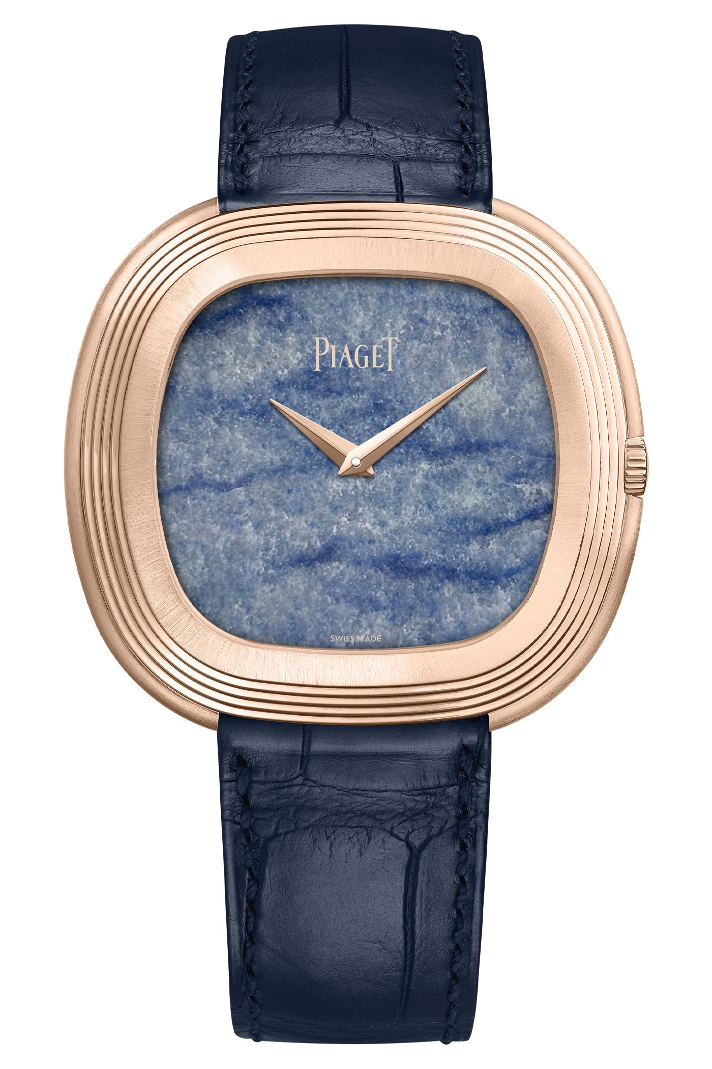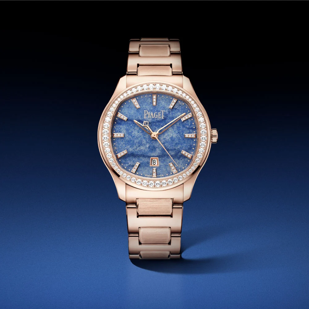 The Piaget Polo was launched in 2016, featuring a completely new, distinctive design, and filled the gap in Piaget’s range at the time for sporty yet elegant stainless steel watches. The Piaget Polo has been and continues to be available in various versions, including those made from precious metals and now also with a blue gemstone dial in the characteristic cushion shape.