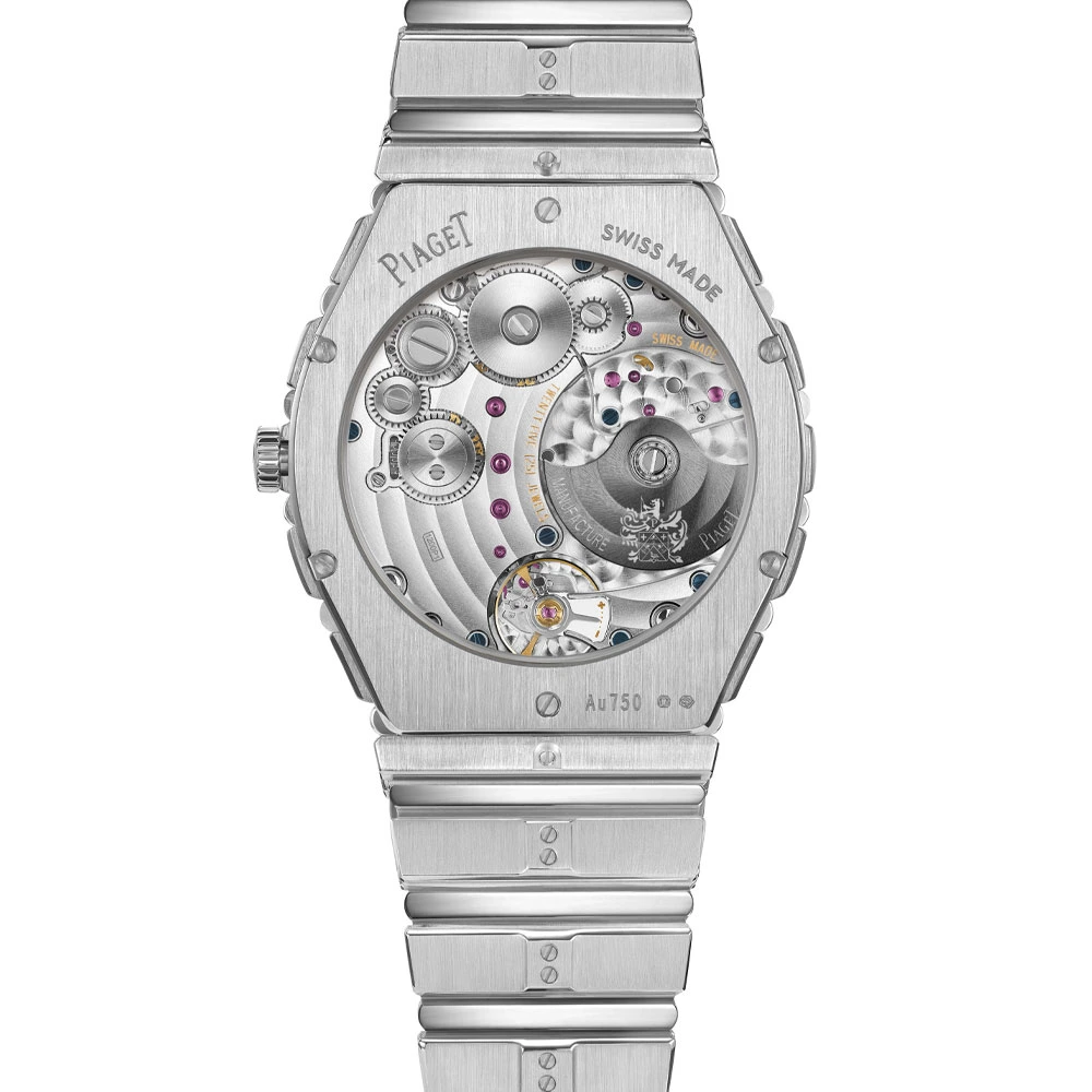 Furthermore, the Piaget Polo 79, with a case thickness of 7.45 millimetres, retains its familiar design with a fully integrated bracelet and the inner workings of its predecessor. The in-house 1200P1 calibre with automatic winding operates at a frequency of 3 hertz (21,600 vph) and offers a power reserve of 44 hours. The price in Germany is €102,000.