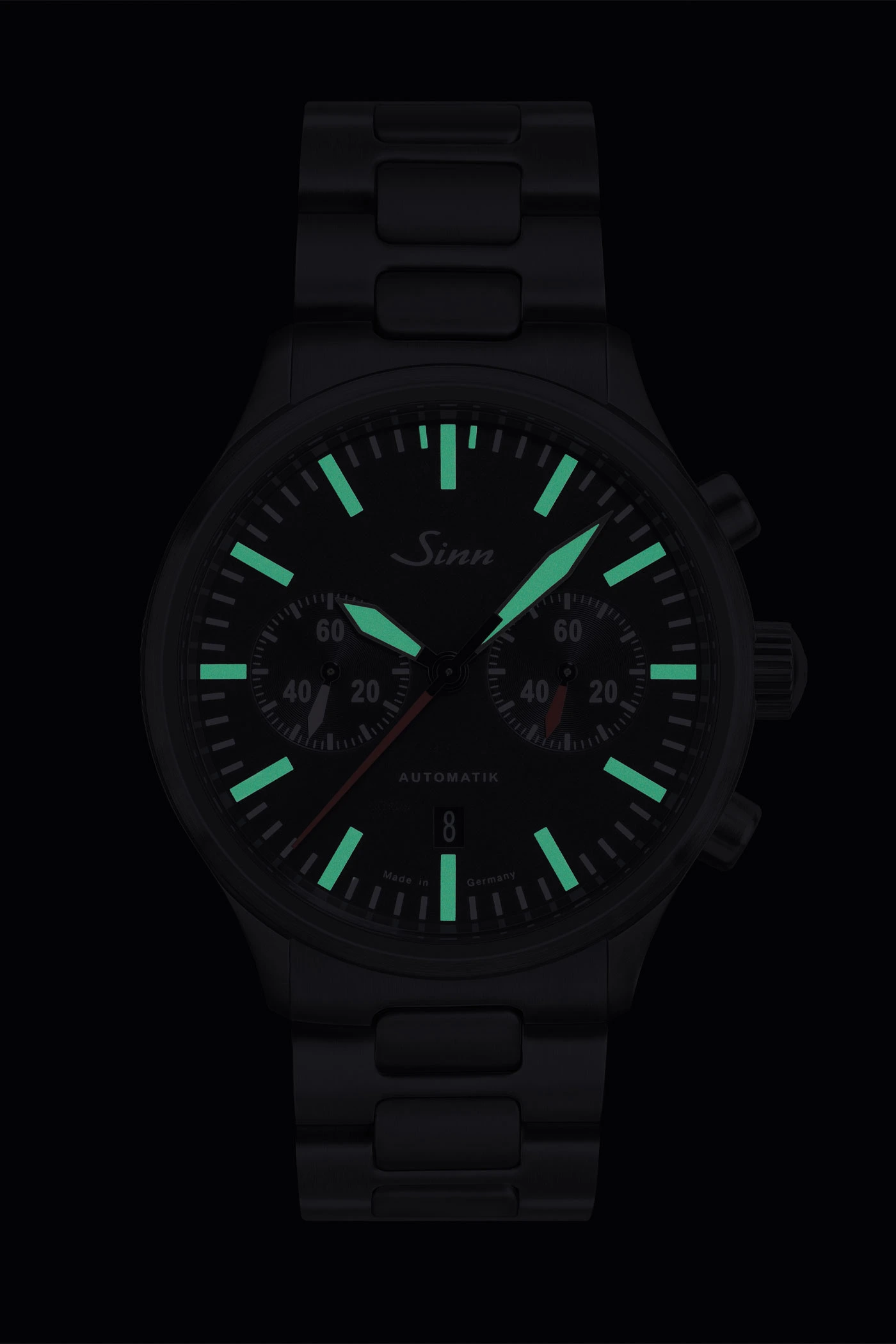 The case of the new SINN chronograph offers further robust features. These include magnetic field protection up to 100 mT (80,000 A/m), which significantly exceeds the requirements of DIN 8309 (the German industrial standard for anti-magnetic wristwatches). This high level of protection is achieved through the construction of a closed, soft-magnetic interior comprising the dial, movement ring and case back.