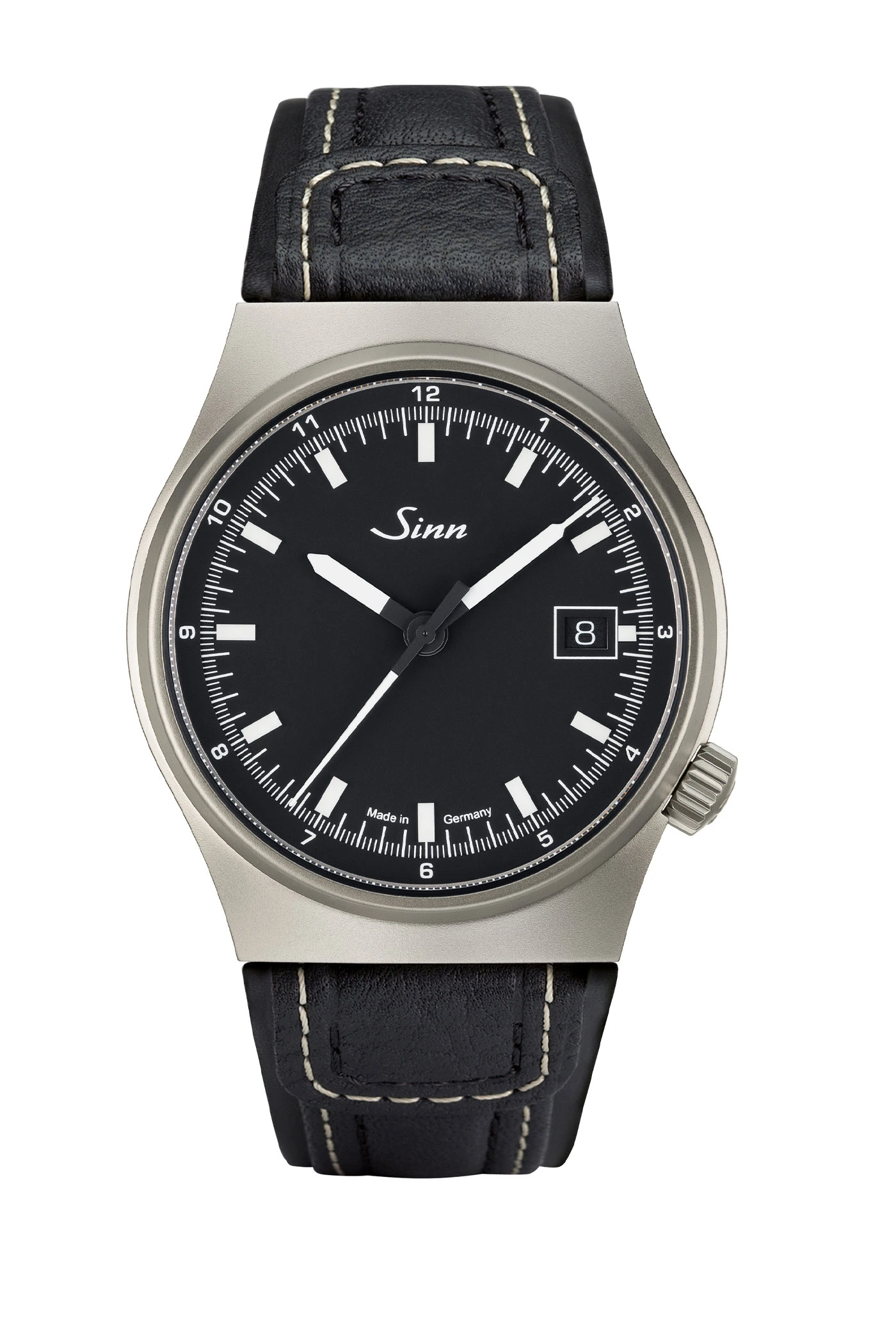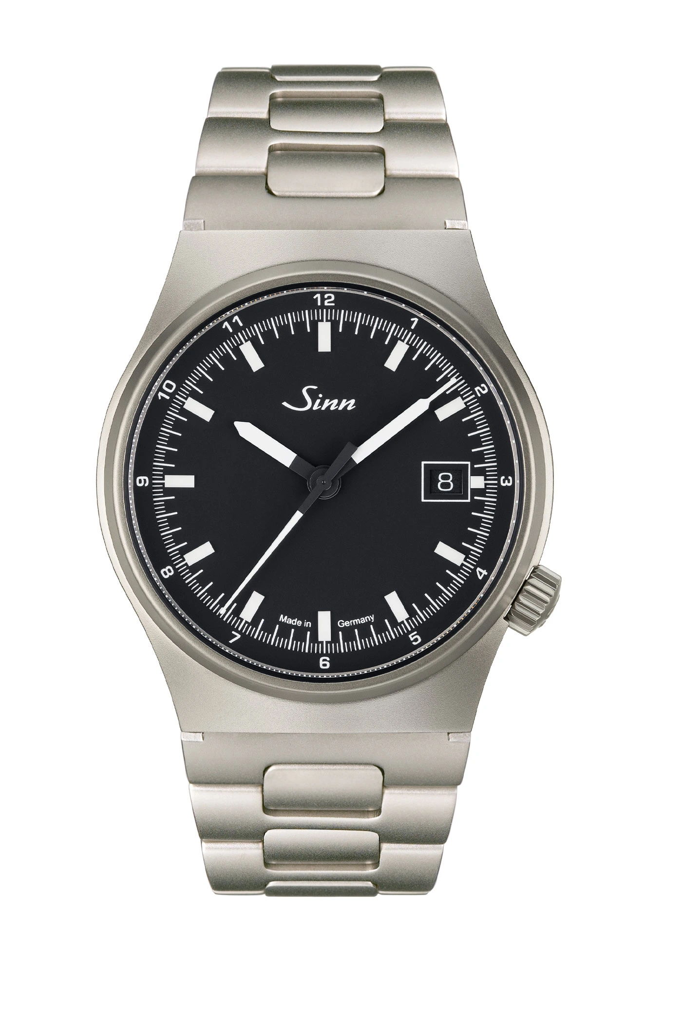 With a diameter of 38.5 millimeters and a height of 10 millimeters, the stainless steel case has a pleasantly compact design. The velvety, bead-blasted finish underscores the watch’s functional character.