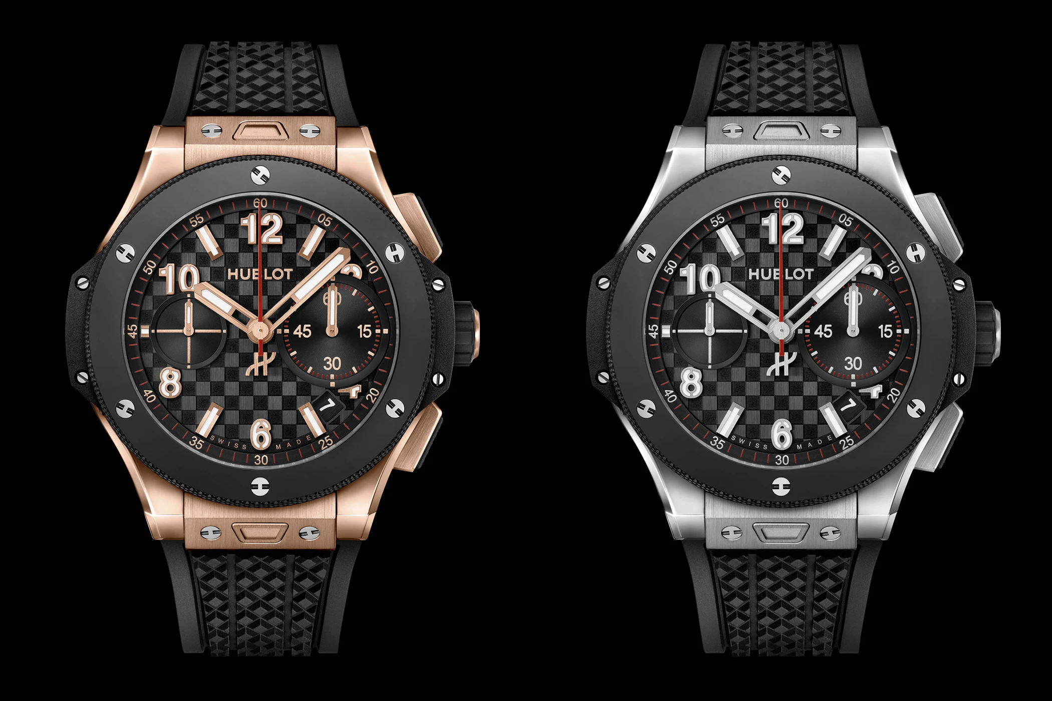 The design concept behind these two editions – a guiding aesthetic principle across all five anniversary models – is, according to Hublot, a literal translation of a vision in which past, present and future converge within the Big Bang. Nowhere is this ambition more apparent than on the dial, where Hublot has reintroduced several elements from the very first Big Bang: including the signature chequered pattern adorned with vertical stripes, and the subdials featuring red markers – now a hallmark of the collection.