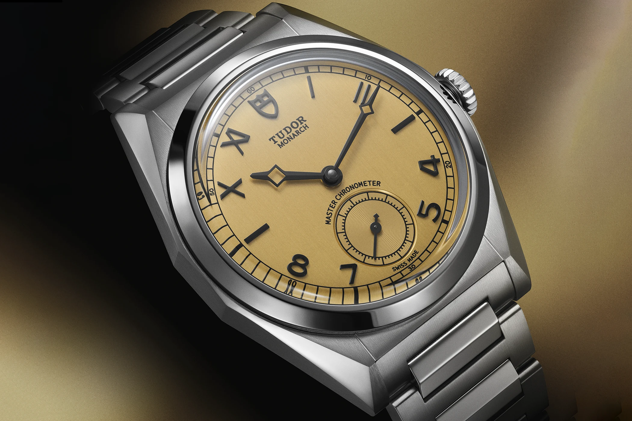 The 39-millimetre case is finely facetted, the lines are sharply defined, and the matching strap echoes this design language. As a result, the Monarch immediately stands out. The dial is particularly successful: its appeal lies above all in its unusual construction. The warm, almost parchment-like hue lends the Monarch a remarkable depth, whilst the combination of Roman and Arabic numerals gives it a distinctiveness rarely seen in this form. It is precisely this deliberate irregularity that defines the watch’s character. The fact that Tudor internally refers to this layout as ‘error-proof’ is fitting: it is unusual, but that is precisely where its appeal lies.