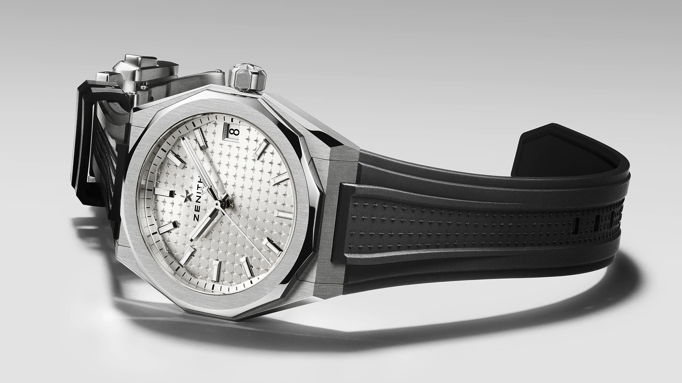 The starting point and reference for this latest re-edition is the A3643, which remained in production from 1969 until around 1975 and was defined by its distinctive geometry, combining an octagonal case with a fourteen-sided bezel. The year 1969 marks a pivotal moment in Zenith’s history. Alongside the launch of the El Primero calibre—the first automatic chronograph movement capable of measuring time to one-tenth of a second thanks to its high frequency of 36,000 vibrations per hour—the manufacture also introduced the Defy. Accordingly, the case of this meticulously recreated new release follows the same angular aesthetic. Its robust 37 mm stainless-steel case, topped by the emblematic fourteen-sided bezel with a high-polished finish and offering water resistance to 30 metres, is closely aligned with the construction of the previously released Revival editions. Turning the watch over immediately reveals the contrast between historic and contemporary design. In place of the solid case back of the original 1969 Defy, the Defy Revival A3643 features a sapphire crystal case back, offering a view of the automatic in-house Elite 670 movement and its skeletonised, star-shaped rotor. The automatic calibre operates at a frequency of 4 Hz and delivers a power reserve of approximately 50 hours.